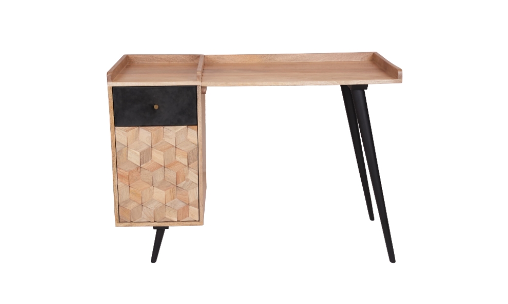 This elegant black wooden writing table brings sophistication and simplicity to any office space. Its durable surface and compact design offer ample workspace while enhancing your room’s decor with timeless appeal.