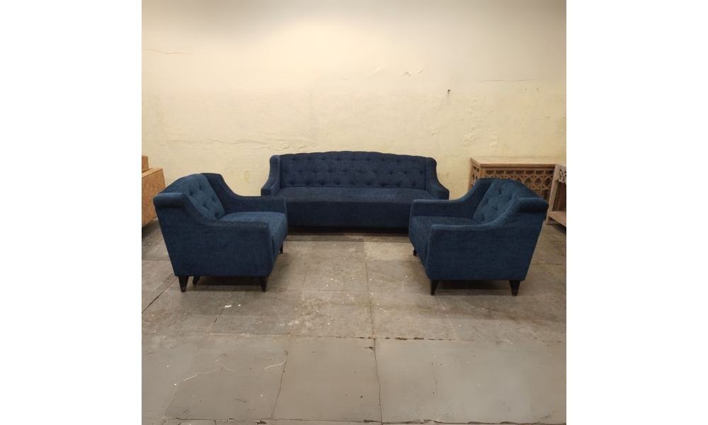 The Blue Fabric Tucsudo 3-Seater Sofa offers a blend of comfort and style with its soft, durable fabric, perfect for modern living rooms and cozy spaces.