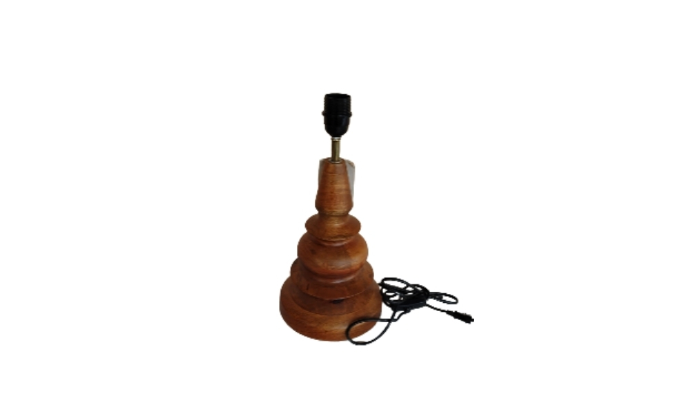 Crafted with a unique brown wooden round ring base, this table lamp exudes sophistication and ambient lighting, perfect for enhancing any living room or workspace.