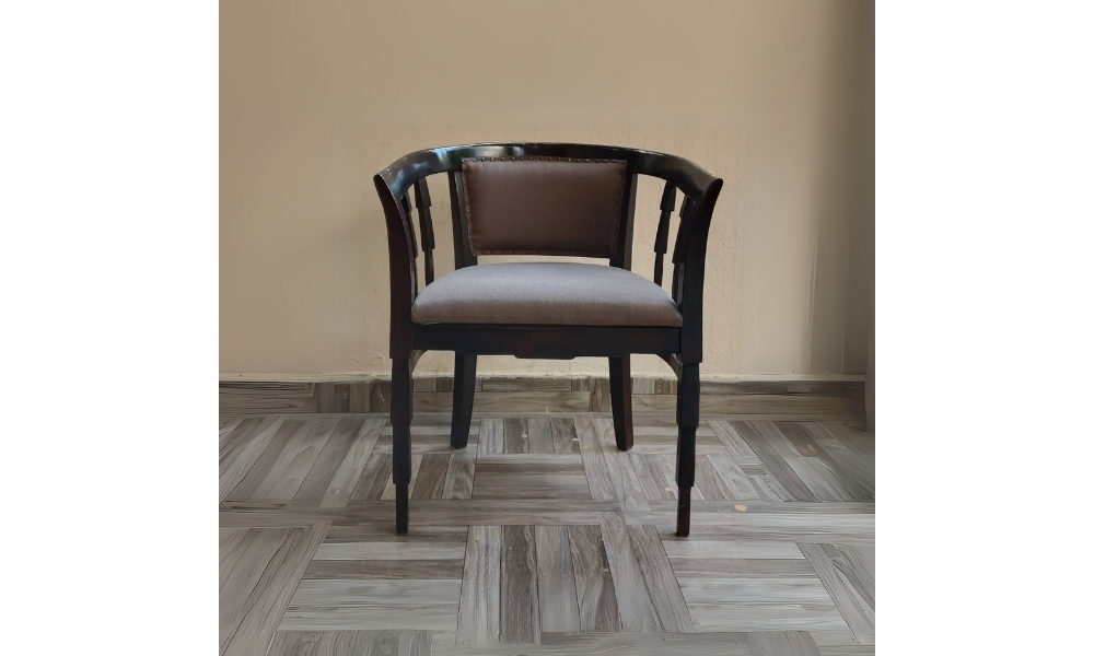 This dark brown wooden 1-seater sofa features a rich, sturdy frame and soft brown fabric upholstery, offering comfort and style for any cozy space or living room.