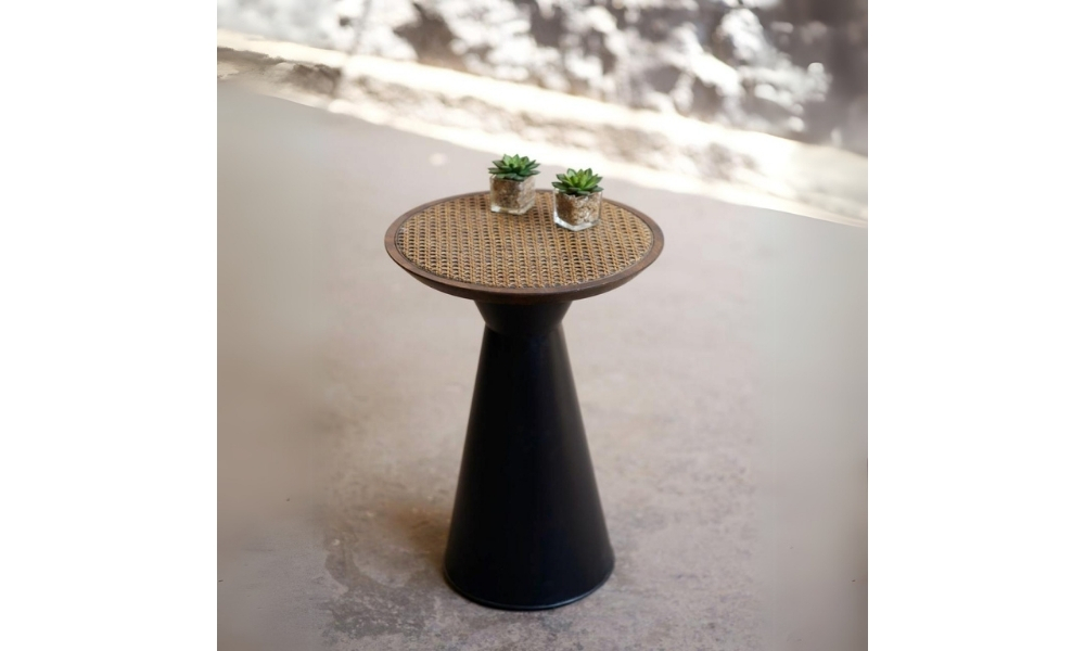 This elegant Dark Brown Wooden Cane Design Top Side Table features a sophisticated cane detailing with a rich dark brown finish, perfect for adding a touch of warmth and style to any room.