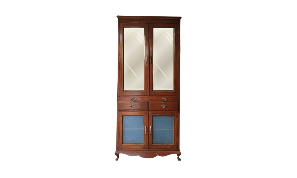 Elegant dark brown wooden cabinet with glass-paneled doors, perfect for showcasing decor or crockery. Adds a vintage charm and functional storage to any space.