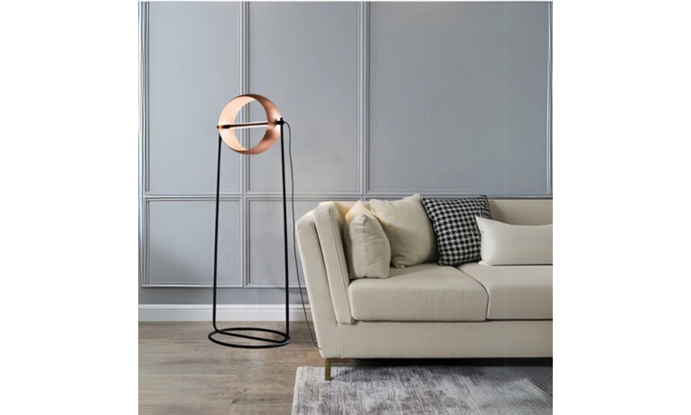 Illuminate your space with style! This floor lamp combines a stunning golden globe shade with a minimalist black metal pole for a chic, contemporary look.