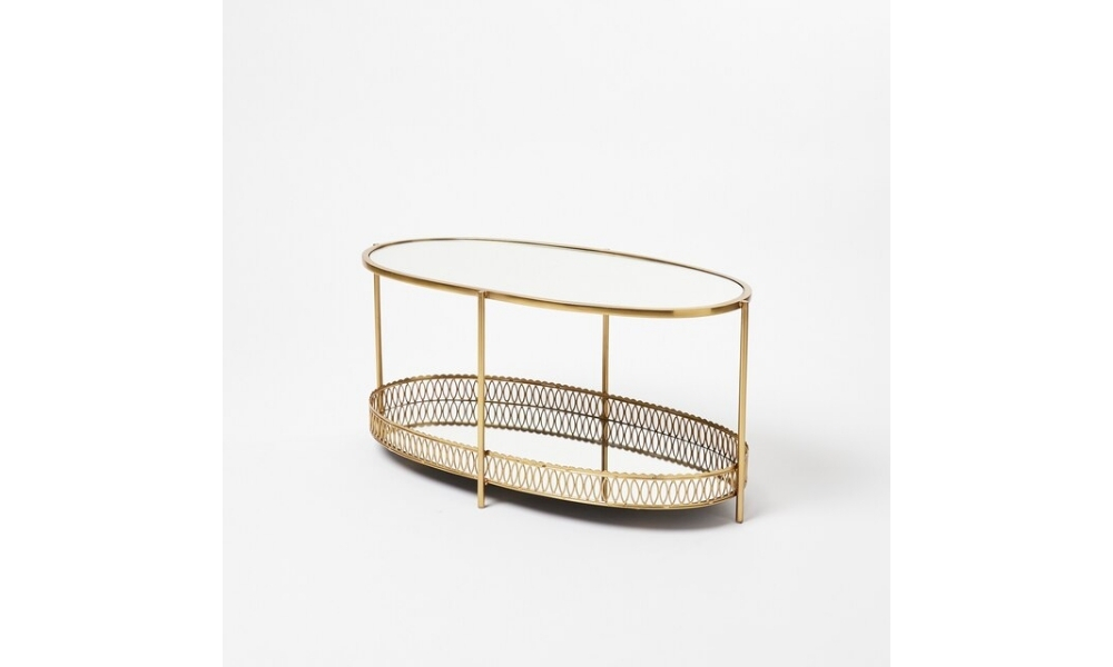 Elevate your space with this elegant 2-tier oval mirror golden metal center table, combining sleek design and functionality for a luxurious touch in any room.