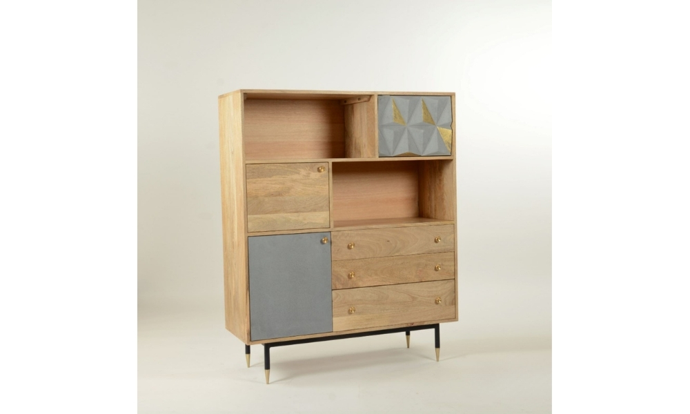 A sleek, light wooden 3-drawer sideboard featuring a minimalist design with ample storage space, perfect for enhancing any living or dining room decor with natural elegance.