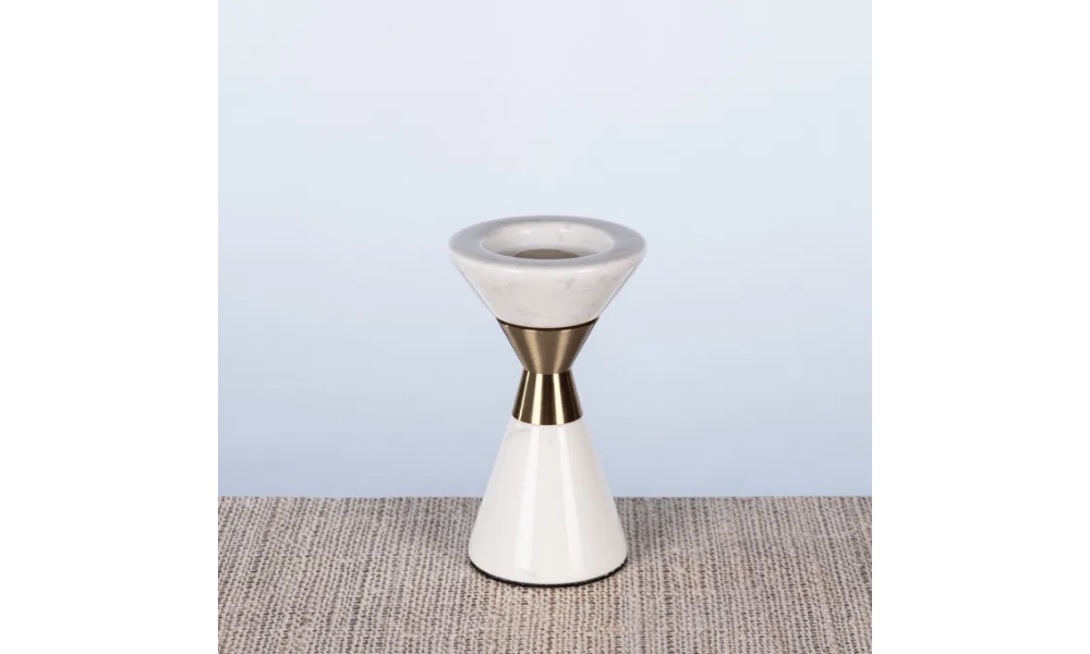 Stylish cone-shaped white marble candle holder adorned with a delicate golden ring pattern. This chic candle stand blends modern minimalism with timeless elegance, ideal for home, office, or special occasions.