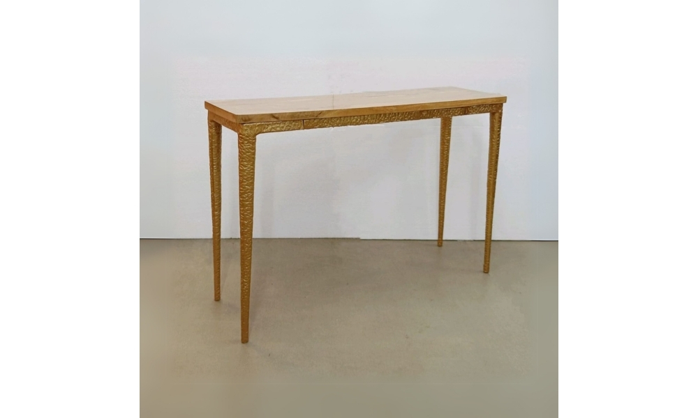A stylish wooden console table with a sleek rectangular top and elegant golden legs, perfect for enhancing any entryway, living room, or hallway with a touch of modern sophistication.