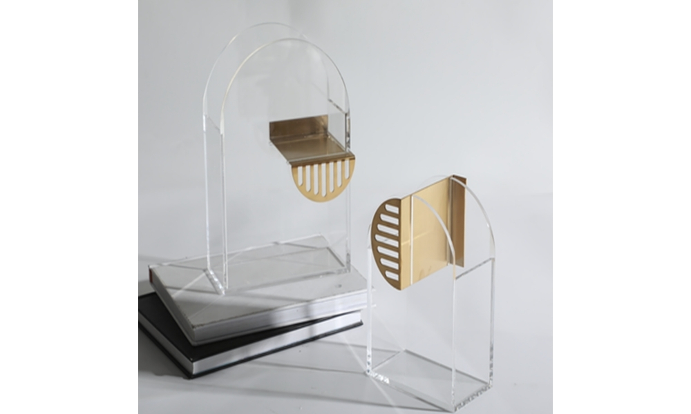Chic U-shaped vase crafted from clear acrylic glass, featuring a sleek golden metal design. Ideal for stylish floral arrangements or minimalistic event setups.