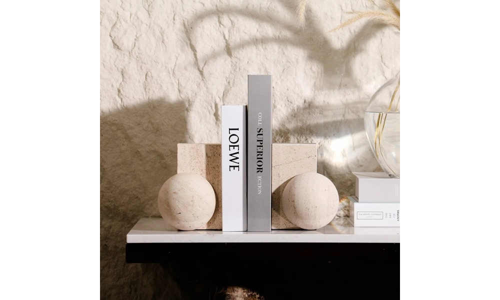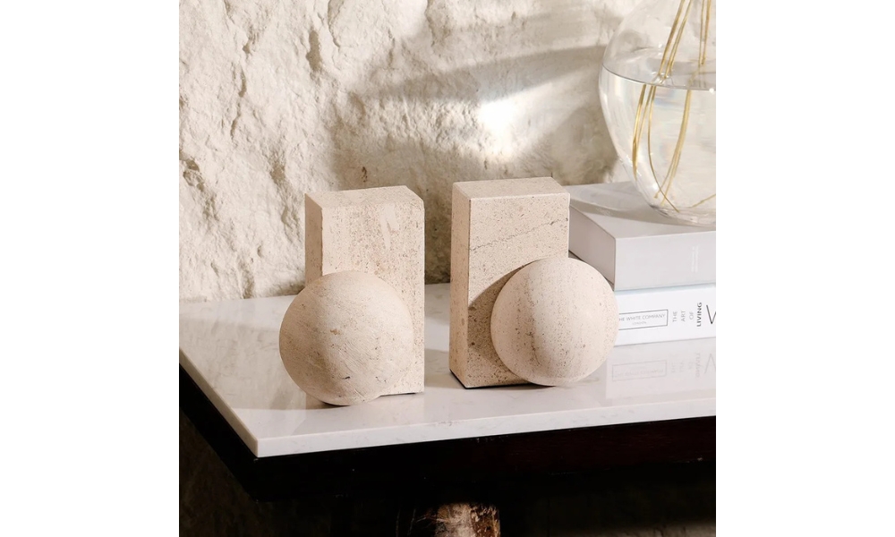 Elegant beige marble bookend with a unique round-square design, perfect for adding sophistication and stability to your bookshelf. Durable, stylish, and ideal for both home and office decor.