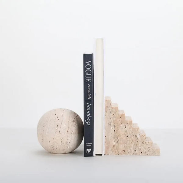 Elegant beige round ball paired with minimalist stairs design, this bookend adds a modern, artistic touch to any shelf. Perfect for organizing books while enhancing your home or office decor.