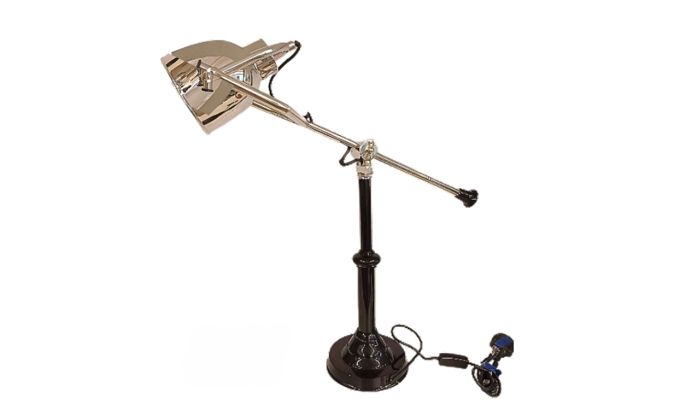 Sleek black and stainless finish table lamp with a bold, modern design. Perfect for desks or side tables. Adds sophistication and focused lighting anywhere.