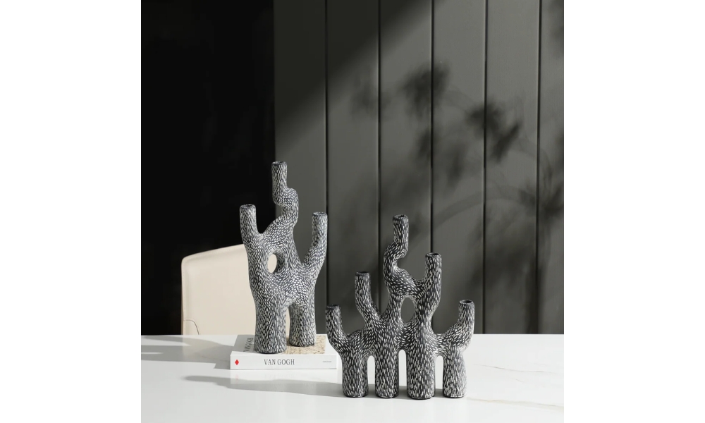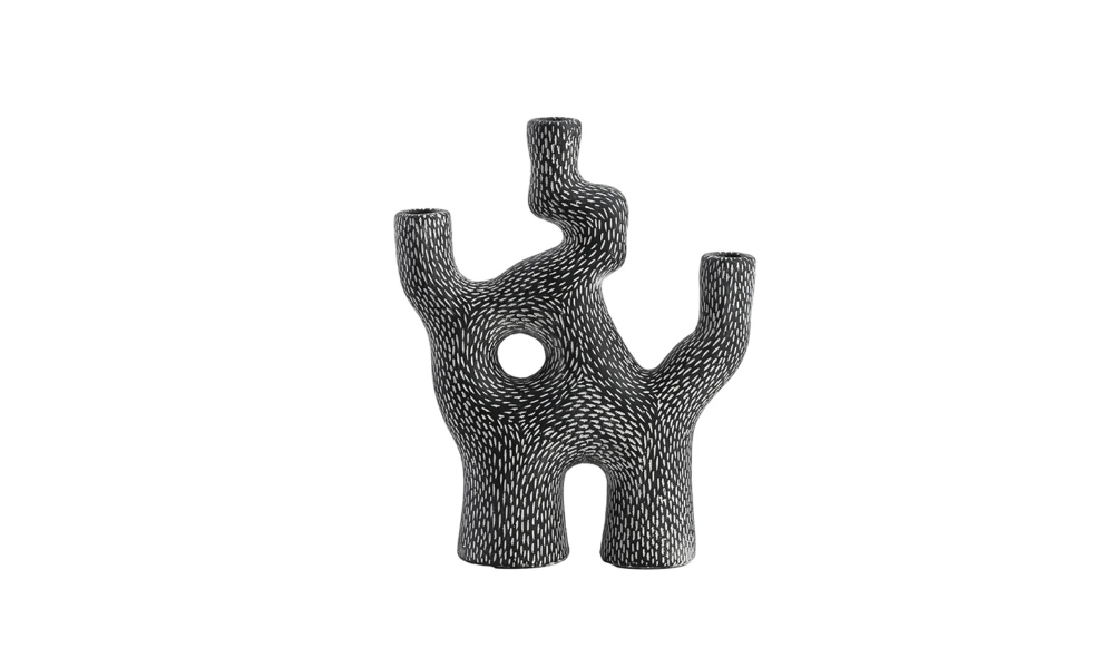 Stylish 3-ended candle holder inspired by black coral, adorned with charming white dots. Ideal for creating a cozy, modern ambiance in living spaces or event settings.