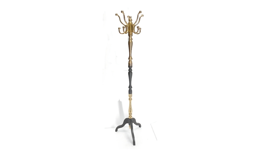 Elegant black and golden metal crown top coat stand, designed to add a regal touch to any space. Sturdy, stylish, and functional, perfect for home or office use.