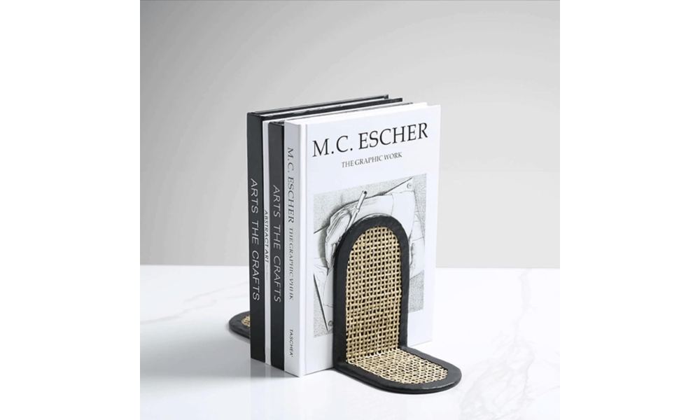 Elegant black L-shaped bookend featuring a stylish cane design. Perfect for organizing books with a touch of sophistication, it adds charm and functionality to any home or office decor.