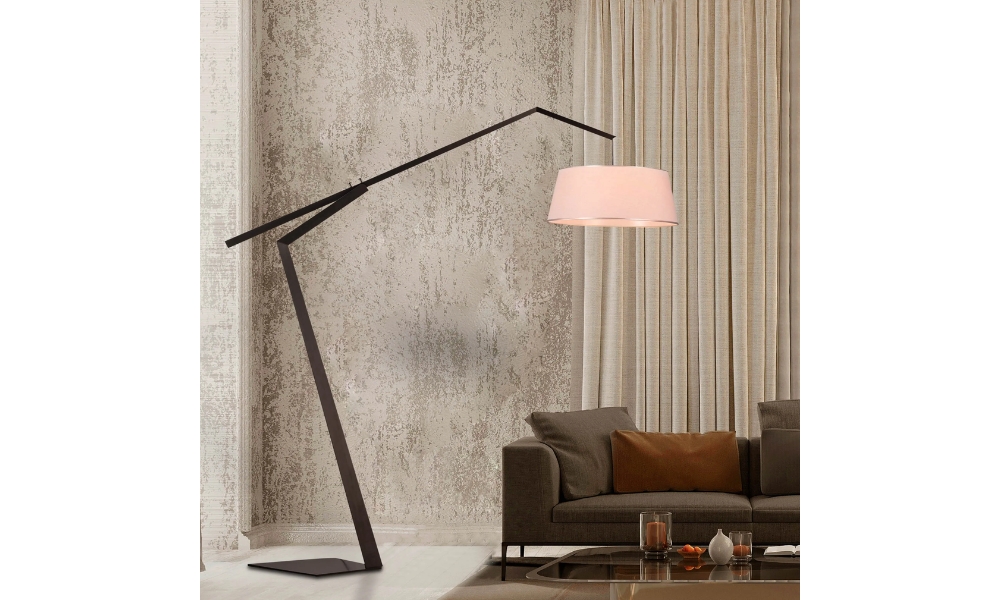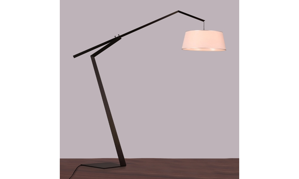 A sleek black metal fishing rod-style floor lamp with a modern grey round drum shade, perfect for adding a touch of elegance to any space.