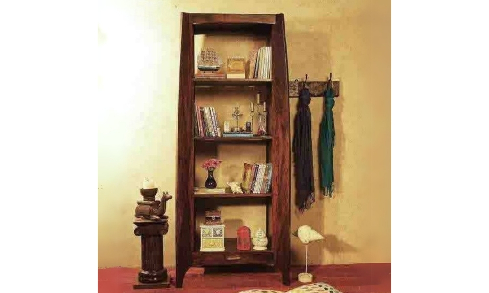 Maximize your space with this sleek corner bookshelf featuring four adjustable shelves. Perfect for organizing books or décor, it fits neatly into any corner while enhancing your interiors.