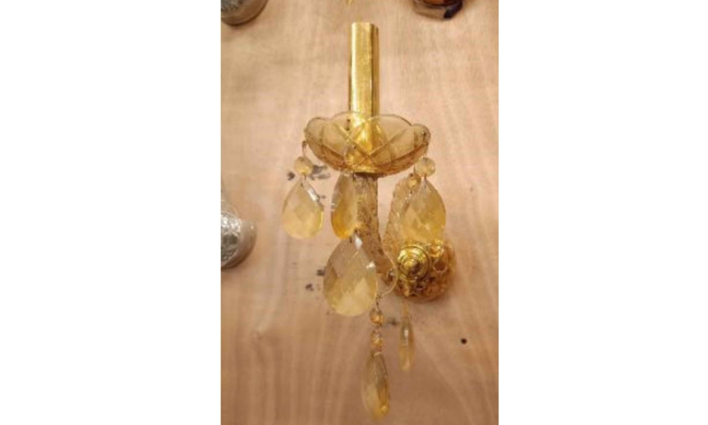 Stylish wall lamp with a golden glass frame and traditional Zari detailing. A timeless piece that blends classic charm with modern sophistication for any space.