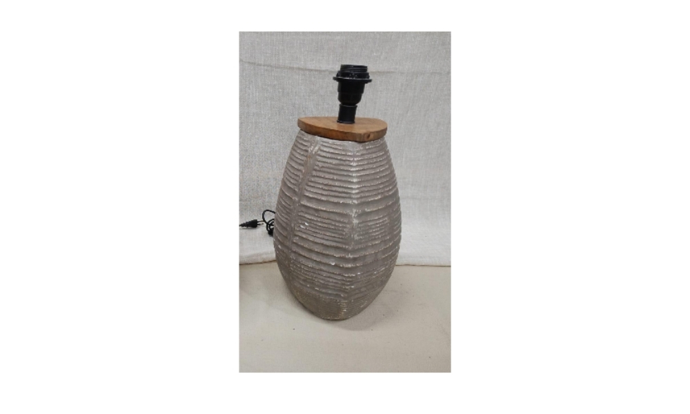 This grey round table lamp features detailed carvings, offering a stylish and refined lighting solution. Ideal for enhancing your home’s ambiance with timeless charm.