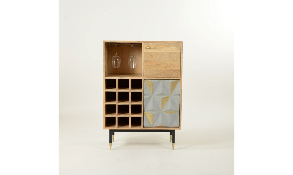 A sleek, modern sideboard featuring a grey diamond-patterned design with a light wooden finish. Perfect for adding elegance and storage to any contemporary living space.