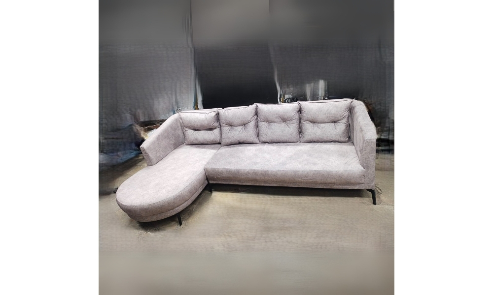 " Experience luxurious comfort with this grey velvet L shape sofa. Its plush upholstery, modern silhouette, and spacious seating make it perfect for stylish living rooms or cozy lounge setups."