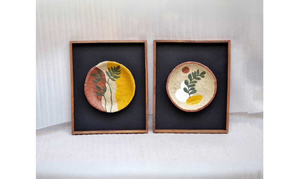 Hand-painted wooden frame wall art featuring a vibrant color bowl design. This unique piece adds charm and artistic flair to any space, perfect for home or studio décor.