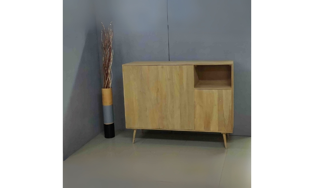 A sleek and stylish light wooden sideboard featuring three spacious drawers, perfect for organizing essentials while adding a touch of modern elegance to any room.