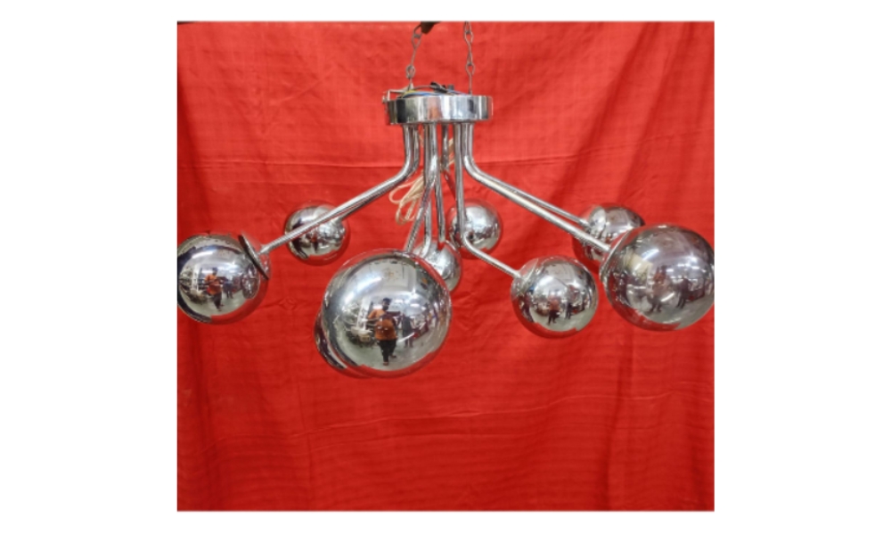 A stunning silver metal hanging lamp with 9 bubble-shaped glass globes, ideal for creating a chic, contemporary atmosphere while illuminating your room with graceful elegance.