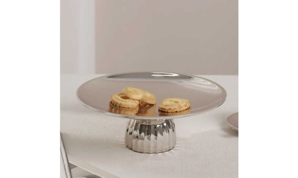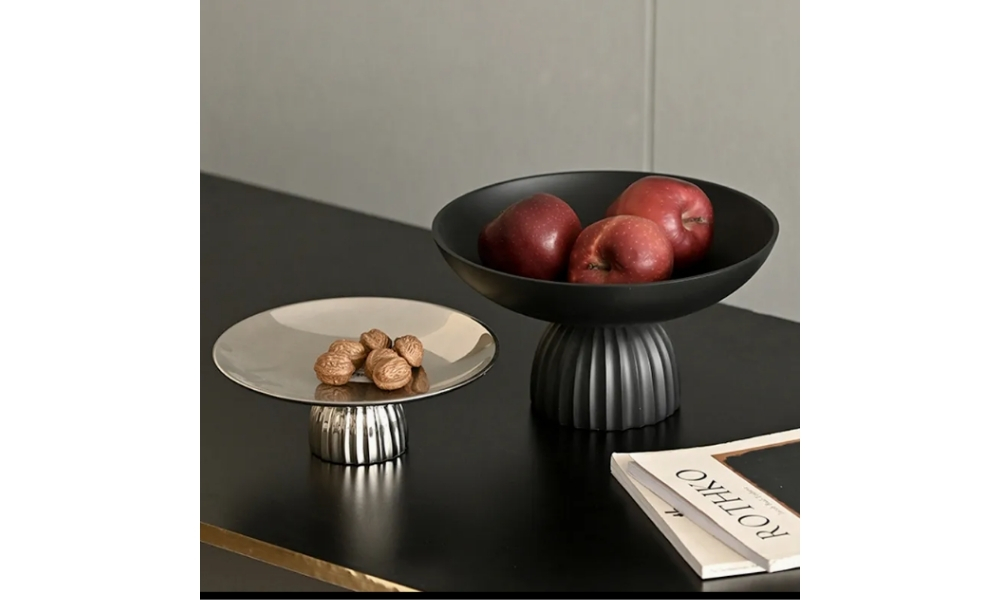 Stylish silver metal decorative bowl with a striking silver stripe base design. Ideal for holding fruits, candles, or decorative accents, it enhances contemporary interiors with a polished, luxurious finish.