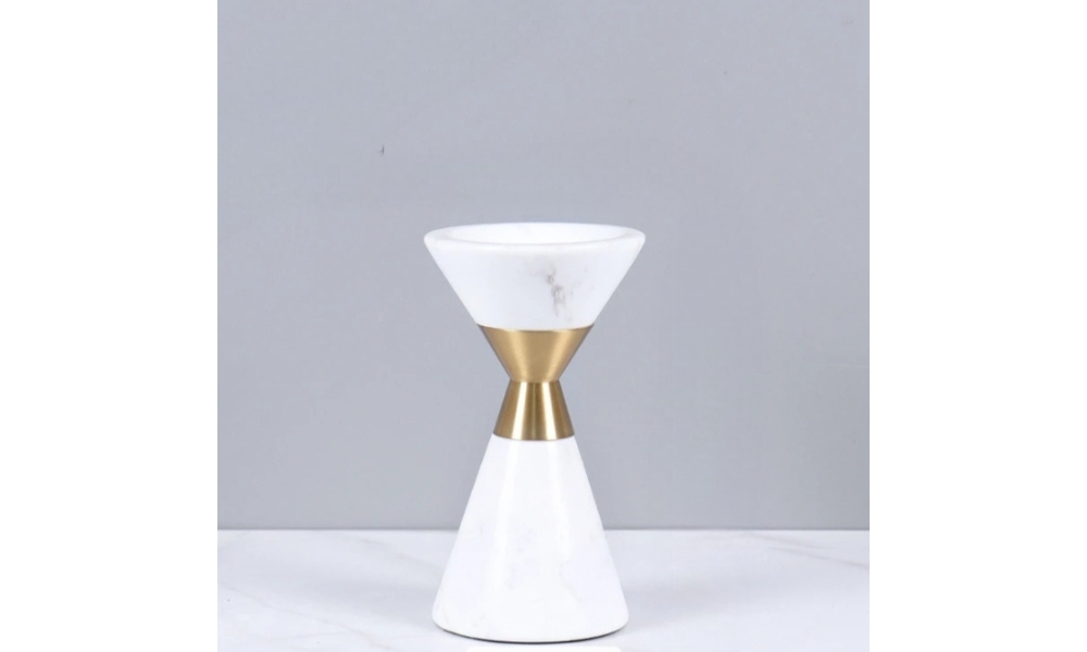 Stylish cone-shaped white marble candle holder adorned with a delicate golden ring pattern. This chic candle stand blends modern minimalism with timeless elegance, ideal for home, office, or special occasions.