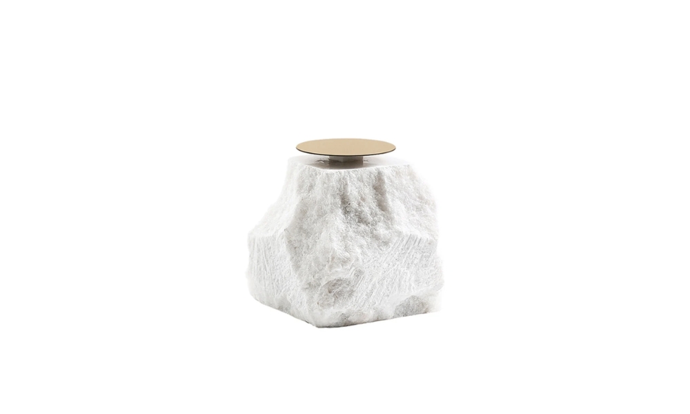 Chic white marble candle stand with a sleek round top supported by golden metal, ideal for enhancing ambiance with a stylish, minimalist design perfect for homes, weddings, or special occasions.